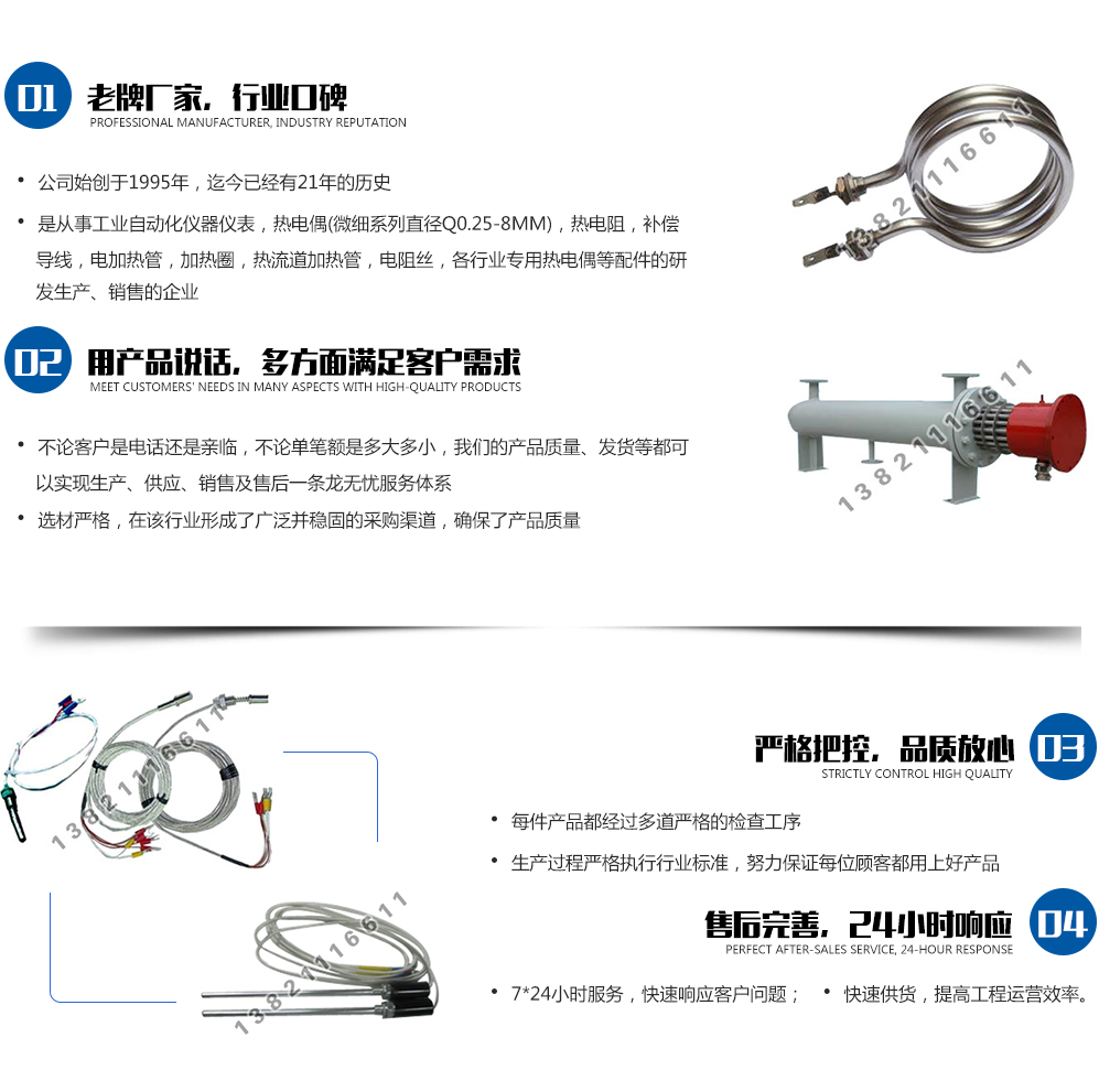 天津昊泰電熱元器件有限公司始創(chuàng)于1995年,迄今已經(jīng)有18年的歷史,是專業(yè)從事工業(yè)自動(dòng)化儀器儀表,熱電偶(微細(xì)系列直徑Q0.25-8mm),熱電阻,補(bǔ)償導(dǎo)線,電加熱管,加熱圈,熱流道加熱管,電阻絲,各行業(yè)專用熱電偶等配件的研發(fā)、生產(chǎn)、銷售的標(biāo)桿企業(yè)。 我們的產(chǎn)品以“昊泰”為主品牌,可以廣泛用于玻璃、冶金、鋼鐵、石化、水泥,電力,塑料,食品等行業(yè)。產(chǎn)品從選材開始就非常的嚴(yán)格,18年的從業(yè)經(jīng)驗(yàn),我們已經(jīng)在該行業(yè)形成了廣泛并穩(wěn)固的優(yōu)質(zhì)采購渠道,確保了產(chǎn)品質(zhì)量關(guān)。同時(shí),引進(jìn)的國外先進(jìn)的生產(chǎn)及檢驗(yàn)設(shè)備,以及擁有的業(yè)界資深的技術(shù)研發(fā)團(tuán)隊(duì),使得生產(chǎn)流程能夠規(guī)范的按照ISO9001:2000國際質(zhì)量體系標(biāo)準(zhǔn)進(jìn)行,能夠在技藝上精益求精。 天津江蘇商會(huì)五金機(jī)電分會(huì)副會(huì)長,昊泰總經(jīng)理李興旺,一直秉信先做人,再做朋友,再做生意。不論客戶是電話還是親臨,不論單筆額是多大多小,我們的產(chǎn)品質(zhì)量、價(jià)格、發(fā)貨等都可以實(shí)現(xiàn)生產(chǎn)、供應(yīng)、銷售及售...